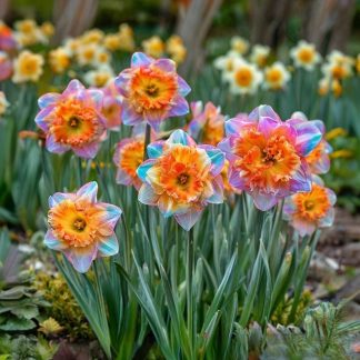 Нарцисс «Айвери Дон» — изысканный сорт, который станет украшением вашего сада. Высота растения достигает 40-45 см, а диаметр цветка — около 8-10 см. Цветки махровые, с нежно-фиолетовыми лепестками и ярко-желтой сердцевиной, источают тонкий аромат. Сорт отличается высокой зимостойкостью, что делает его идеальным для выращивания в средней полосе России.